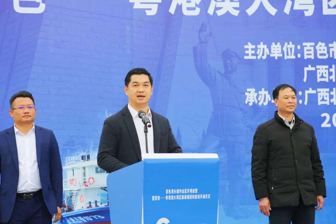 自治区交通运输厅、国资委,广西海事局、自治区港航中心;百色市政府、交通运输局、自然资源局、工业和信息化局、应急管理局、生态环境局、海事局;百投集团、百色工投集团、百储物流、登高集团、施工单位等相关负责同志参加当天的开港及开航仪式。