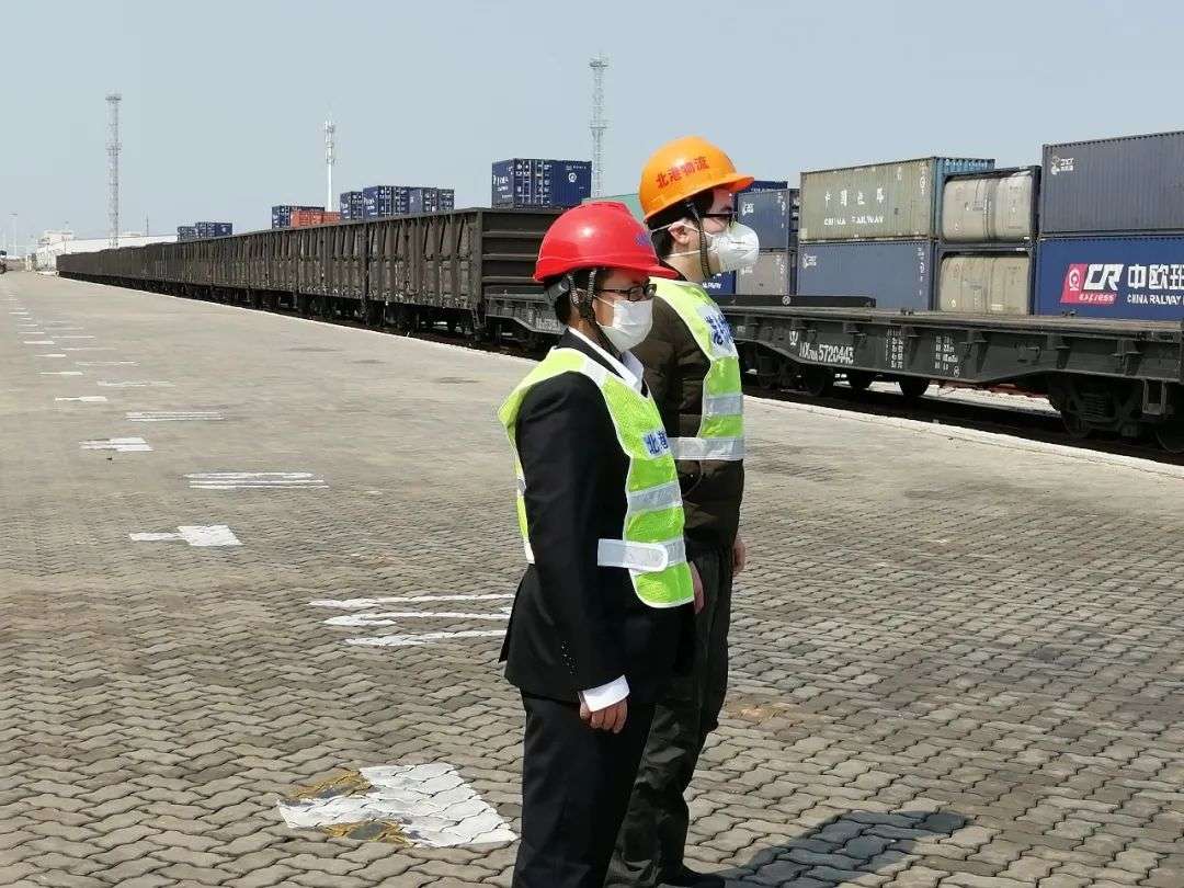 在北海铁山港,物流现场操作员正忙碌着贺州石粉工厂春节发运工作,日均发运达92箱。据统计,2023年1月份累计完成贺州班列发运3950箱,环比增长9.12%。