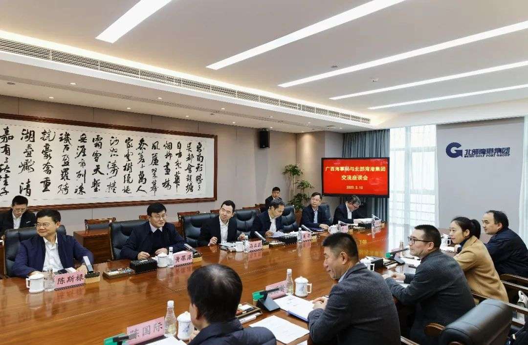 2月10日,广西海事局党组成员、副局长宋国锋率队到访北部湾港集团,与北部湾港集团党委委员、副董事长、副总经理黄葆源深入交流,双方就助力西部陆海新通道建设、实现北部湾港高质量发展进行座谈。