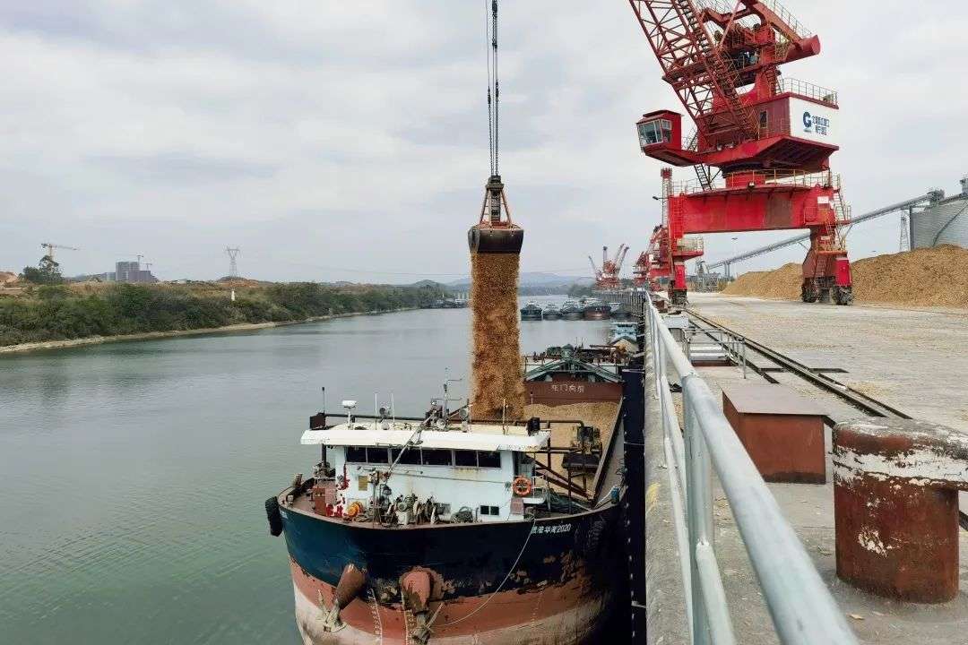 满载木片的“贵港华海2020”船舶从北港西江港口南宁港牛湾作业区缓缓离港,顺西江流域直下粤港澳大湾区。“贵港海华2020” 设计载重4242吨,船长67.3米,这是南宁港有史以来迎来的载重吨最大、船长最长的船舶。