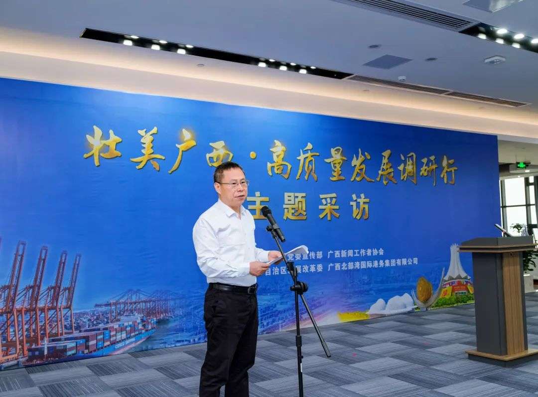 4月17日,由自治区党委宣传部、广西新闻工作者协会主办,自治区发展改革委和北部湾港集团协办的“壮美广西·高质量发展调研行”主题采访在北部湾港集团启动。