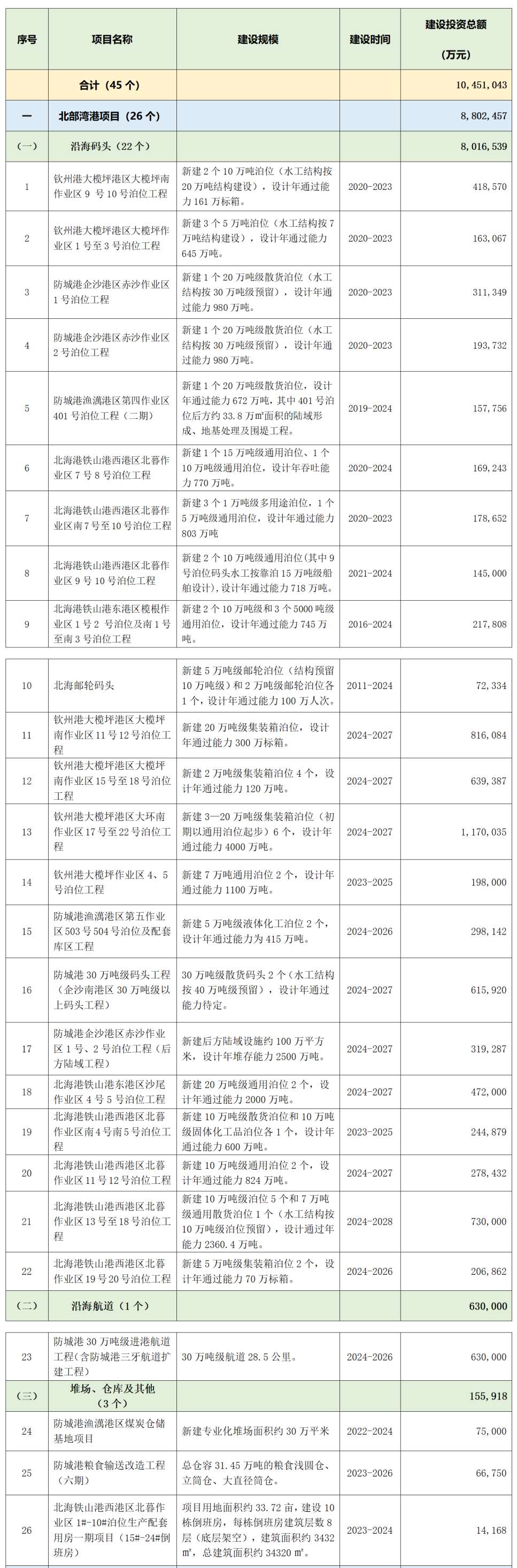 经北部湾港集团重大工程建设委员会审议,现公布北部湾港集团2023年重大工程项目清单(第一批次)。