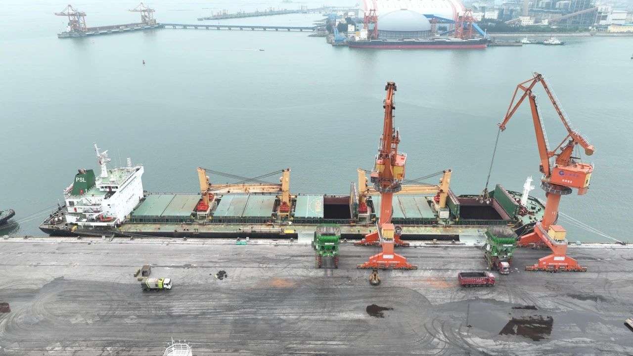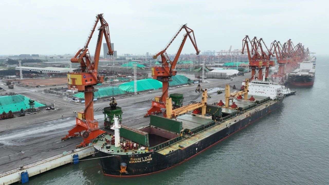 在防城港口岸,孟加拉籍“贝康”轮满载50000吨印度铁矿正在北部湾港防城港渔澫港区406#泊位作业,此次对外启用渔澫港区404#—406#泊位是落实广西“三大定位”、服务西部陆海新通道建设的重点项目,其中404#泊位为1个7万吨级多用途泊位(水工结构按10万吨预留),405#、406#泊位为2个5万吨级多用途泊位,设计年通过能力135万TEU。