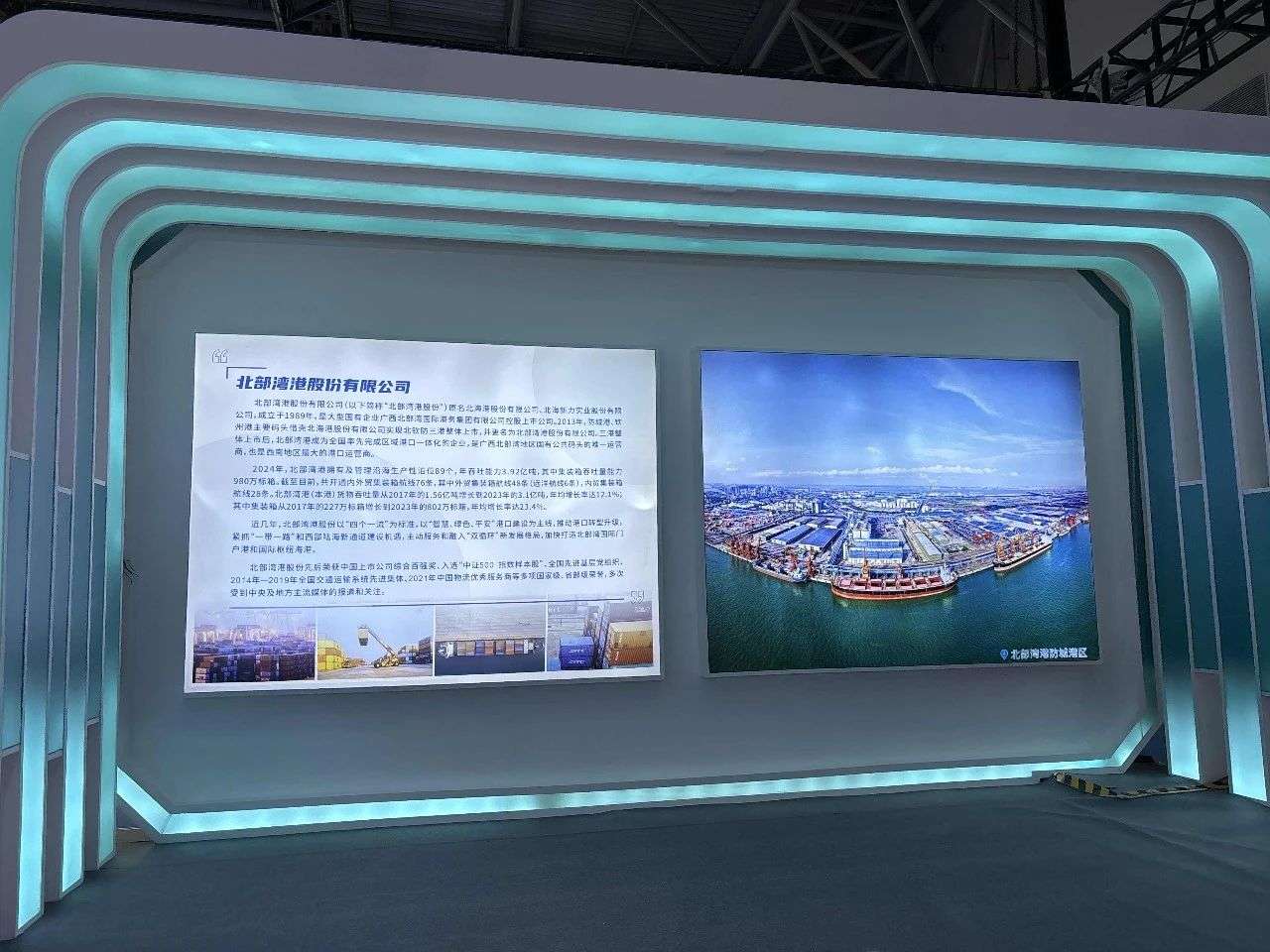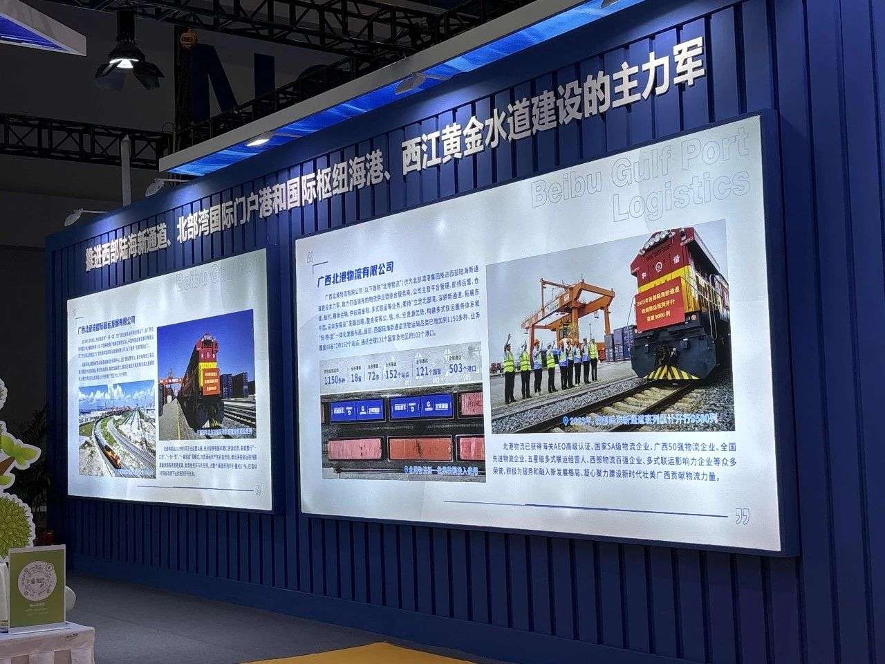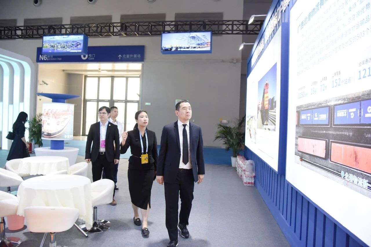 北部湾港集团作为践行“一带一路”倡议和服务西部陆海新通道建设的主力军,此次于现代服务业专题馆N6-B02设置展区。集团本次参展内容由北部湾港集团旗下的北部湾港股份、北港物流、北部湾联运三家单位共同策展,展厅总面积286㎡,以实物加多媒体结合图文展板的形式,充分展示了西部陆海新通道渝桂合作成果以及北部湾港集团港口、物流板块的综合实力,充分展示了集团“通道带物流、物流带经贸、经贸带产业”现代物流体系建设情况,向参会各方展现了亮眼的“北港名片”。
