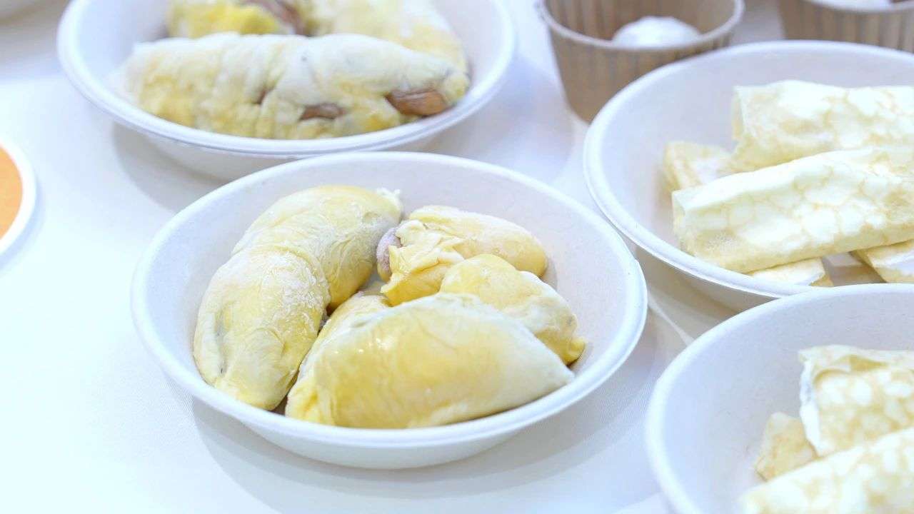 在现场,香气浓郁的猫山王整果、果肉以及衍生产品如榴莲冰粽、班戟、麻薯、果蓉等吸引消费者驻足围观、争先试吃,更有多家媒体纷纷“探店”,为“猫山恋”榴莲品牌赚足流量。