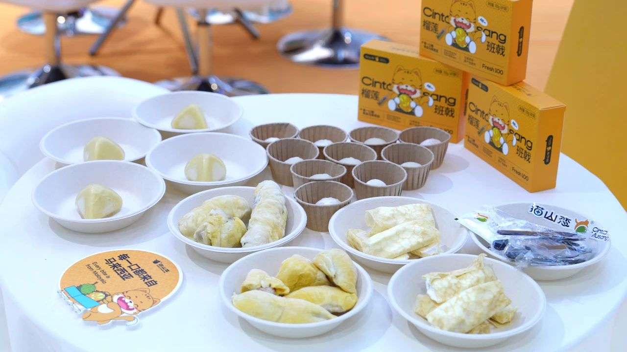 以会为媒,共享甜蜜。此次展会上,越来越多的新产品,沿着新通道走进西部——北部湾港集团“猫山恋”榴莲品牌首次亮相西洽会便惊艳全场。据了解,这也是西洽会上通过西部陆海新通道,从马来西亚进口而来的猫山王榴莲整果首次亮相。